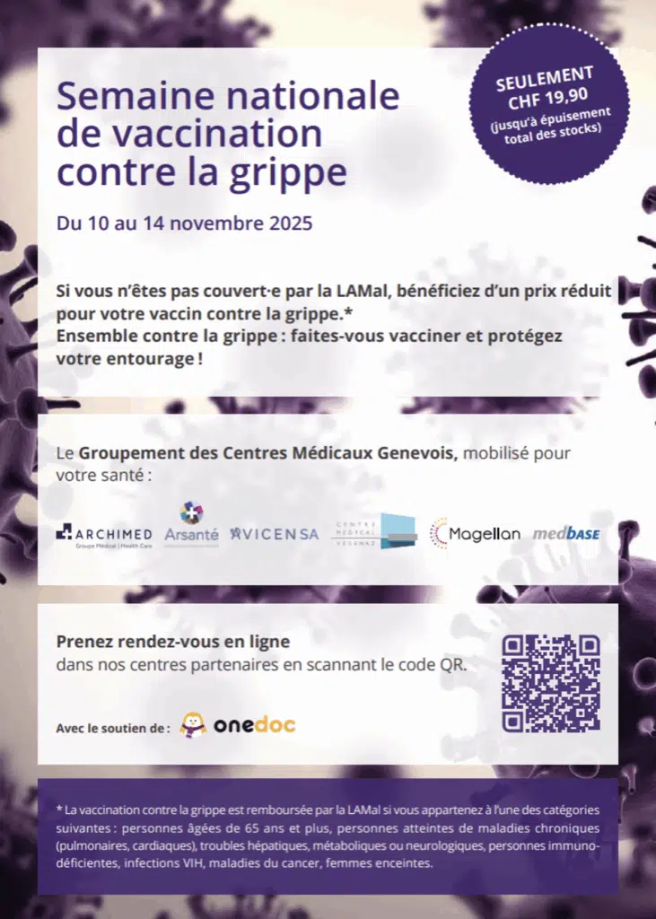 Le Centre médical de Vésenaz participe activement à la campagne nationale de vaccination, en proposant cette année un tarif préférentiel aux proches aidants de patients à risque. Inscrivez-vous vite, les places sont limitées !