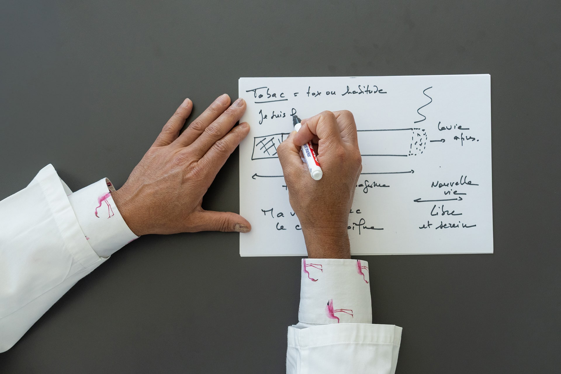La consultation de tabacologie comporte ainsi une phase de bilans et d’analyse de la situation, une phase d’élaboration de stratégies et d’apprentissages, une phase de mise en application et d’ajustements, une phase d’accompagnement sur le long terme. Le travail est volontiers interdisciplinaire et selon les besoins : reprise de capacités physiques encadrée (aide de physiothérapeutes ou spécialistes de l’effort), prévention de la prise de poids (aide avec diététicienne), garder son calme et un équilibre psychique (aide avec psychologue, gestion de stress, hypnose, méditation, art-thérapie). Des propositions de suivi individuel et de soutien groupal font partie de la démarche. La prescription s’il y a lieu de traitements médicamenteux ou d’analyses biologiques, d’explorations cardio-vasculaires, endocriniennes, respiratoires ou d’autres domaines sont envisageables en accord avec votre médecin traitant